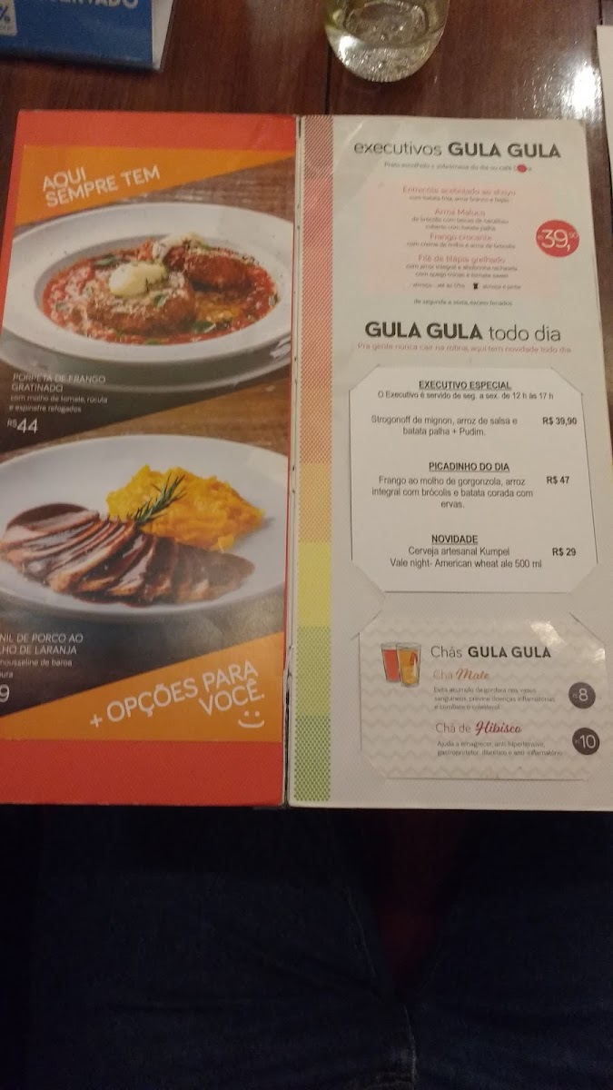 Welcome to Gula Gula, a culinary gem nestled in Tijuca, Rio de Janeiro. This vibrant restaurant offers a feast for the senses, showcasing traditional Brazilian flavors with a modern twist. At the heart of its menu is the "Clássicos do Gula" section, featuring standout dishes such as the Moqueca Da Casa, a rich seafood stew served alongside rice and farofa, all for R$92. Meat lovers will revel in the Tender Desossada Chicken with toasted onion sauce, paired with creamy lemon rice at R$89. Another highlight is the Sesame-Crusted Fresh Tuna, complemented by a refreshing quinoa tabule, all artfully presented for R$105. To quench your thirst, Gula Gula serves invigorating juices like their Limonada Suíça Carioca for R$14, and rich coffees including a delightful Cappuccino for R$15. Every dish is crafted with quality ingredients, promising an experience that celebrates Brazil's culinary heritage and warmth. Come savor the flavors at Gula Gula!